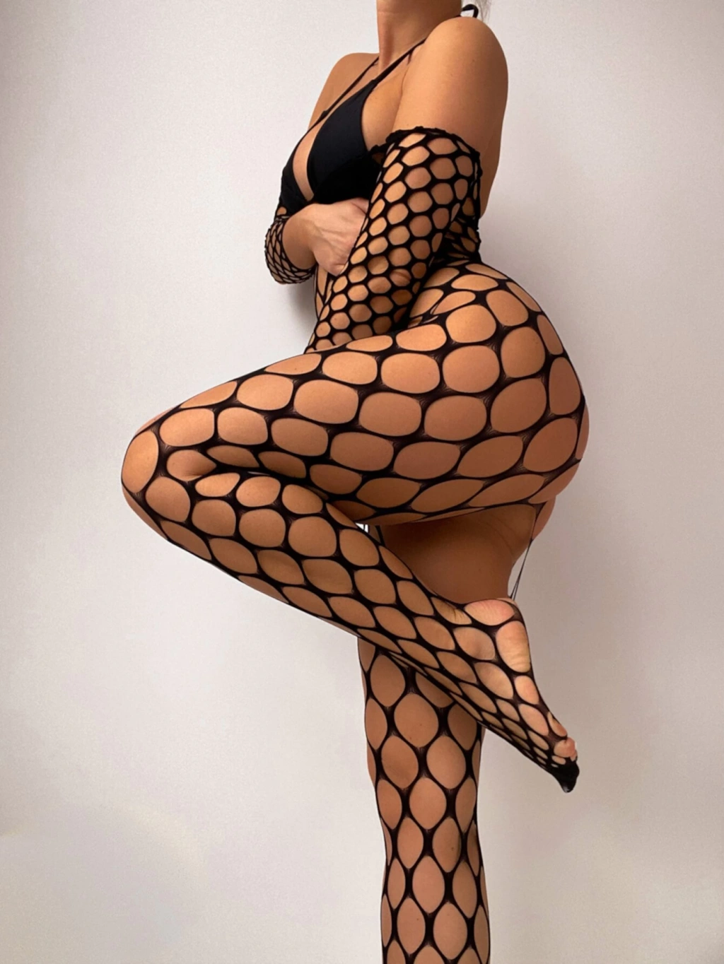 Kadın Özel Bölgesi Açık Siyah File Fantazi Vücut Çorabı