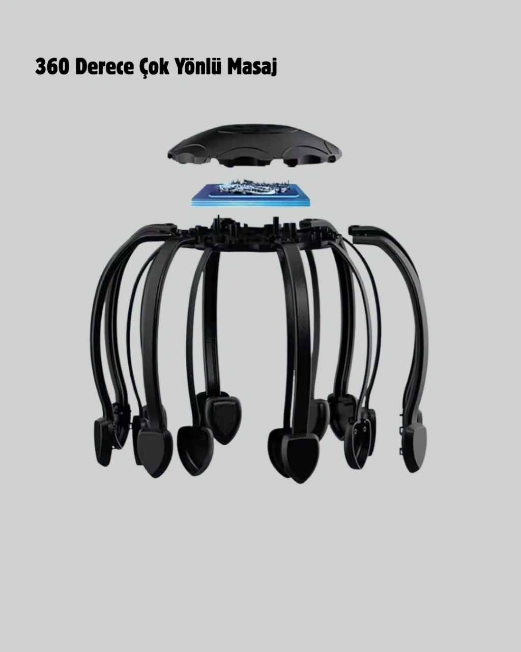 Pratik, hafif ve taşınabilir yapısıyla günlük kullanım için ideal olan bu kafa masaj cihazı, hem ev ortamında hem ofiste hem de yolculuklarda rahatlama sağlar. 8 bağımsız masaj kolu, saç derisine eşit ve düzenli baskı uygulayarak baş bölgesindeki tüm gerginliği ortadan kaldırmaya yardımcı olur.360 derece masaj yapısı, tüm kafa çevresini sararak çok yönlü bir masaj etkisi sunar. Cihazın üç farklı modu sayesinde ister hafif gevşetici, ister orta ayarda rahatlatıcı, isterseniz daha güçlü bir titreşimle derinlemesine masaj yapabilirsiniz.USB şarj edilebilir batarya sistemi, uzun ömürlü kullanım sağlar ve cihazı kablosuz şekilde çalıştırmanıza olanak tanır. Eller serbest kullanım özelliği, kitap okurken, bilgisayar başında otururken veya dinlenirken masajın kesintisiz devam etmesini sağlar.Hafif yapısı ile çantalara kolayca sığar. Bu nedenle yoğun tempo yaşayanlar için mükemmel bir kolaylık sunar. Masaj başlıkları saçları çekmeden yumuşak dokunuşla hareket ederek hem saç derisini hem de baş kaslarını rahatlatır.Düzenli kullanımda baş ağrılarını hafifletir, kan dolaşımını destekler, zihni rahatlatır ve uyku kalitesini artırır. Günün stresini atmak, daha hafif hissetmek ve empati güçlendirmek isteyen kullanıcılar için ideal bir masaj cihazıdır.
