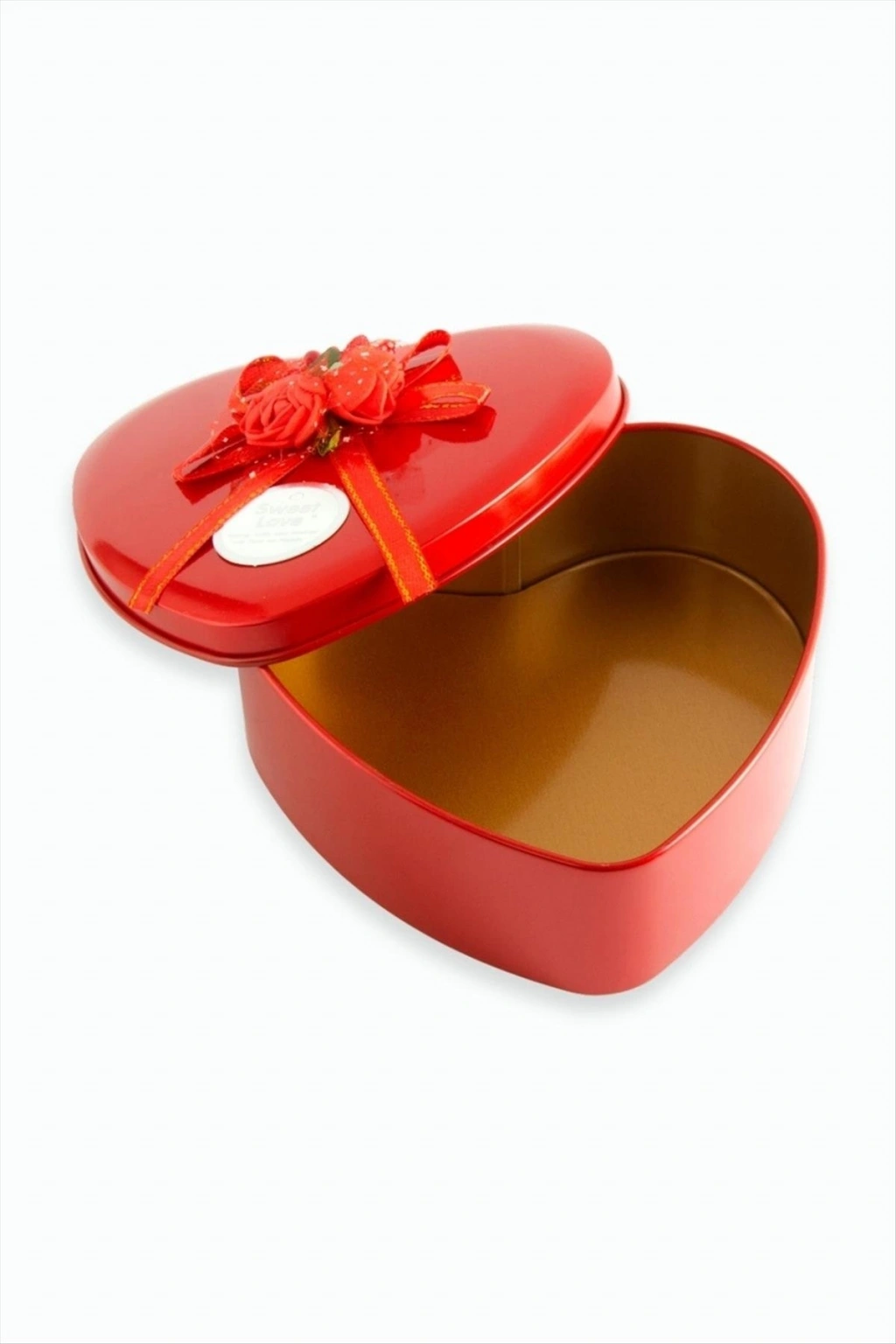 Kalp Boş Kırmızı Metal Kutu 16 cm