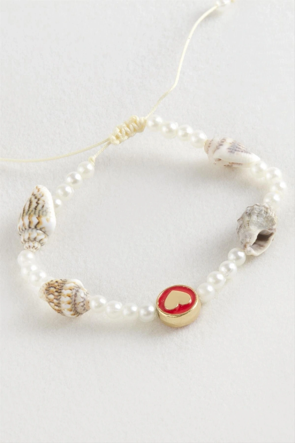 Kalp Deniz Kabuğu İnci Makrome İp Bileklik
