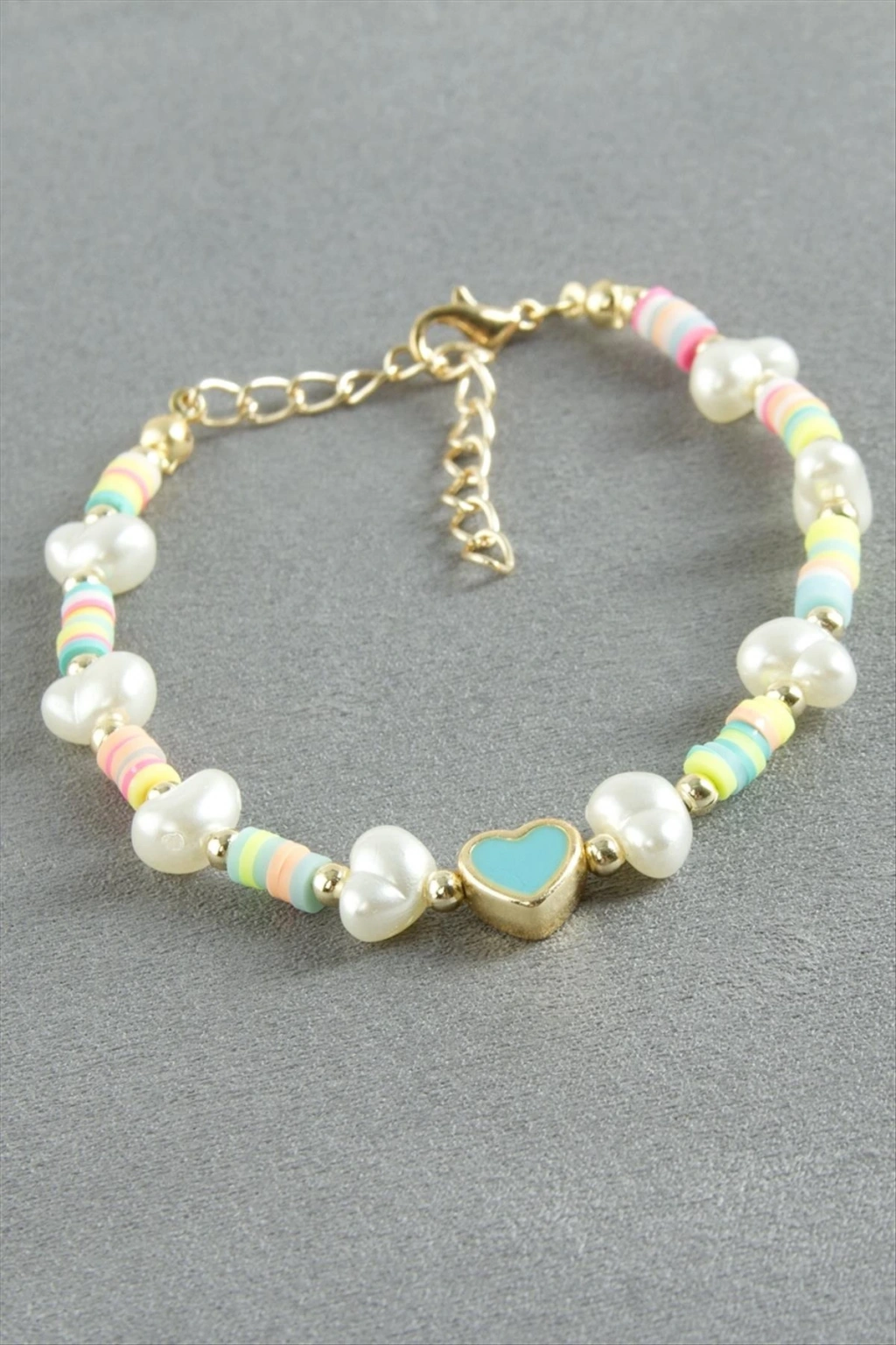 Bileklik; Ürün malzemesi fimo boncuk ve incidir. Ürün boyu 19 cmdir. Fiyat 1 adet için geçerlidir. Kartlıdır.