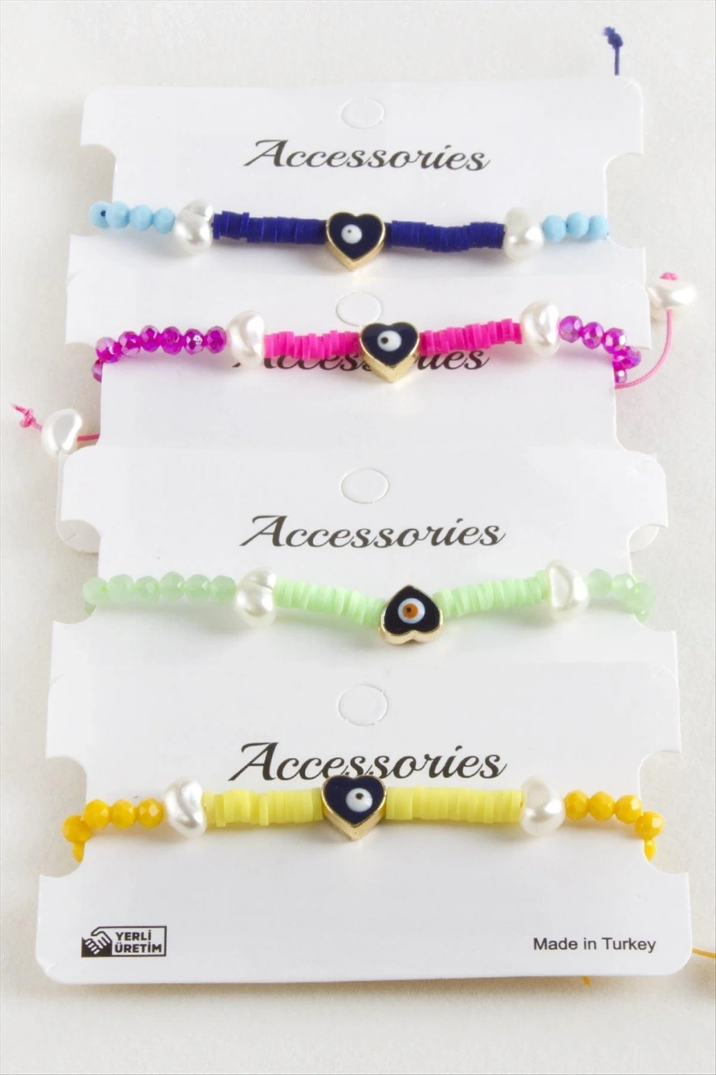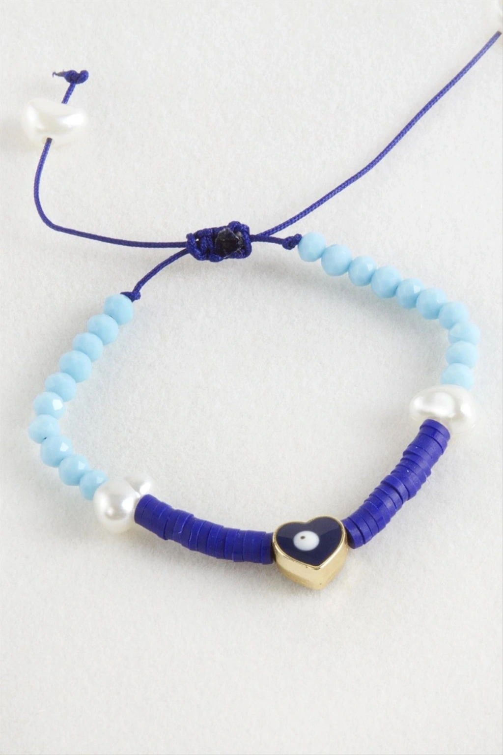 Kalp İnci Fimo Kristal Makrome İp Bileklik