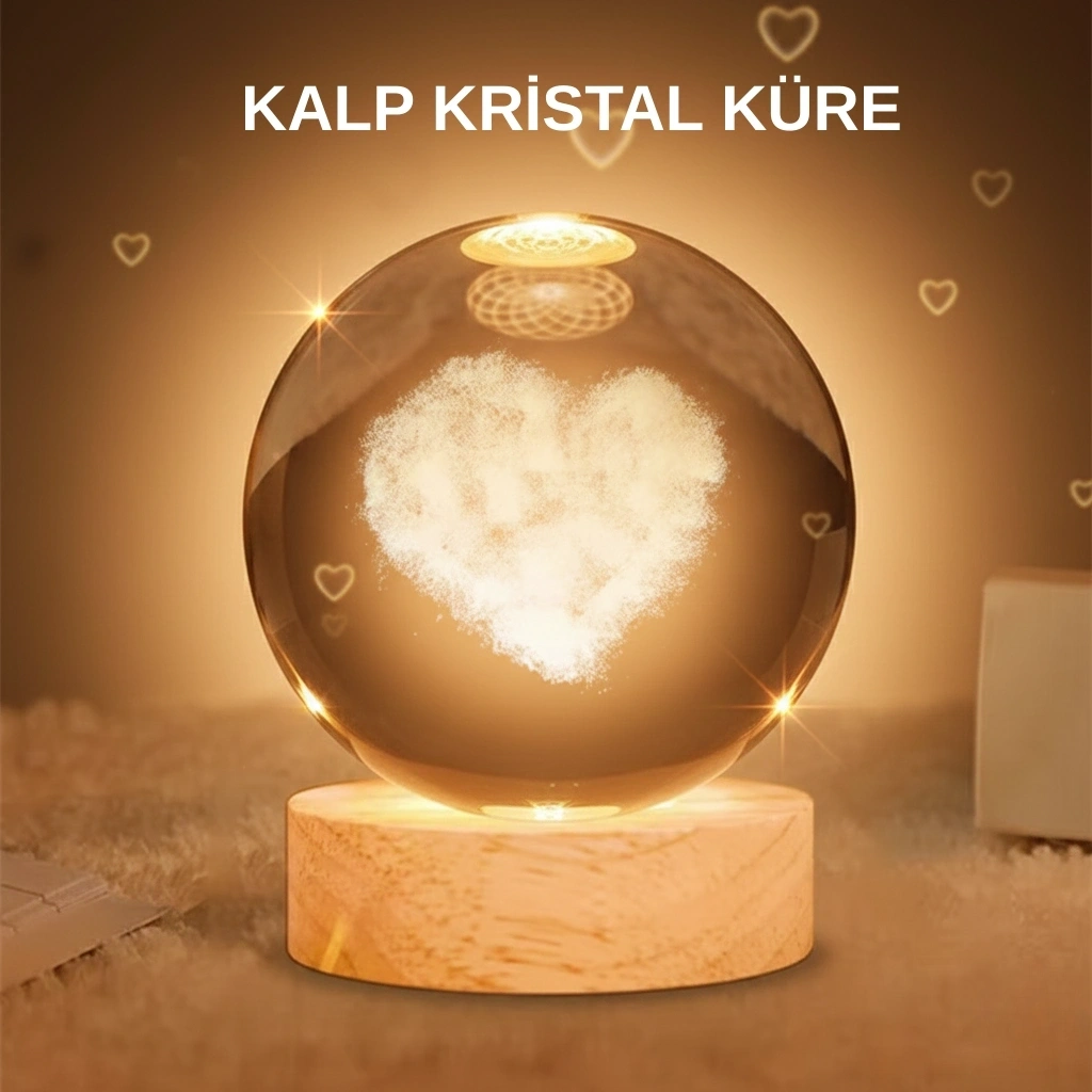 Kalpli Işıklı Cam Küre, dekorasyonunuza hem romantik hem de modern bir dokunuş katmak için tasarlanmış eşsiz bir hediye alternatifidir. Üst kısmı yüksek kaliteli kristal camdan üretilmiş olup içindeki kalp deseni ışıkla birleştiğinde büyüleyici bir görünüm sunar. Büyük boy cam küre (8 cm) ve doğal tonlara sahip 7,5 cm ahşap standıyla her ortamda dikkat çeker ve es bir bütünlük sağlar. USB ile çalışan yapısı sayesinde pratik ve güvenli bir kullanım sunar. Açma–kapama düğmesi ile istediğiniz zaman ortamınıza sıcak bir ışık ekleyebilirsiniz. Sevgililer Günü, doğum günü, yıl dönümü veya özel günlerde sevdiklerinize verebileceğiniz anlamlı ve zarif bir hediye seçeneğidir.