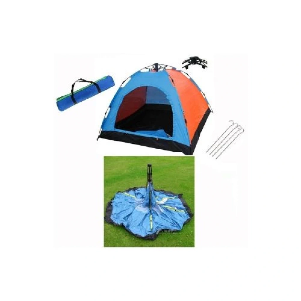 Kamp Çadırı 4 KişilikKOLAY KURULUM KAMP ÇADIRI 4 KİŞİLİKKolayKurulum Kamp Çadırı, rüzgar ve yağmur geçirmez !Otomatik 4 Kişilik Kamp Çadırı,şeklinde satılan birçok üründen daha büyüktür.KolayKurulum Kamp Çadırı, 200 * 200 * 135 cm. ölçüsüyledört-beş kişiye kadar içinde kalabileceğiniz bir ürün. Dağda, kampta, ormanda,tatilde, plajda, festivallerde çok rahat kullanabileceğiniz Kolay Kurulum KampÇadırı.Kolay Kurulum Kamp Çadırı, kampmaceralarına yeni başlayanlar için oldukça avantajlı bir ürün, hem çok kolaykuruluyor hem de ekonomik.Bu Kamp Çadırı Tam Olarak 1 Dakikaİçinde Kuruluyor ! ÜrünÖzellikleriKamp Çadırı sadece bir dakika içindekullanıma hazır.Kolay Kurulum Çadır, üstteki ipiçekerek bağlı tüm direkleri hazır hale getirir.Esnek fiber çubuklar.Havalandırma gözü perdesi.Çok hafif ve portatif olduğu içinkolaylıkla kurabilir veya kaldırabilirsiniz.Güneşin altında kalmakistemiyorsanız çok ideal bir korunma aracıdır.Orjinal taşıma çantası.Tavan su geçirmez polyester kumaş.Taban su geçirmez oxfordkumaş. 7.9 mm fiberglass çubuklarlar.Tek Kat. ÜrünÖlçüleri200 cm. * 200 cm.* 135 cm. Paketİçeriği1 Adet Kamp Çadırı 4 Kişilik Not: Renkler stok durumuna göre karışıkolarak gönderilecektir.