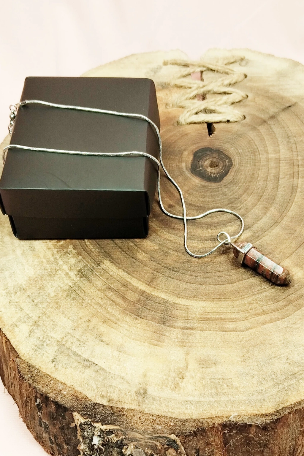Kantaşı Doğal Taşı Zincirli El Yapımı Tasarımlı Kolye Uç: 3,5 cm Zincir: 20 cm Kutulu