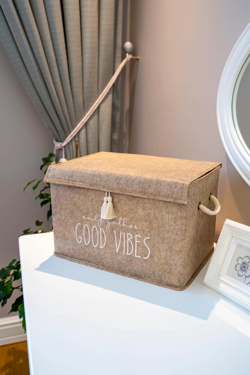 Kapaklı Püskül Detaylı Düzenleyici Çok Amaçlı Organizer Keçe Sepet (mini) - 03495