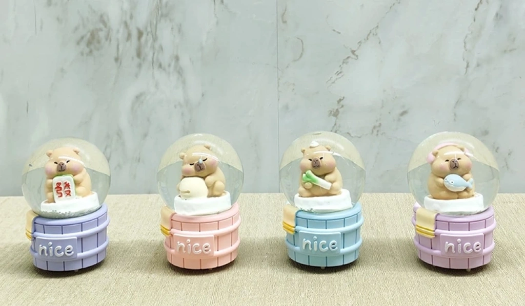 KAPİBARA TASARIMLI IŞIKLI KAR KÜRESİ Ürün ÖzellikleriKapibara tasarımlı ışıklı kar küresi, sevimli ve dekoratif görünümüyle hem çocukların hem de yetişkinlerin ilgisini çeken özel bir süs objesidir. 9x6,5 cm ölçülerindeki kompakt yapısı sayesinde masa üstü, raf, vitrin, komodin veya çalışma masası gibi birçok alanda rahatlıkla kullanılabilir. Küre içerisinde yer alan kapibara figürü, detaylı işçiliği ve pastel tonlardaki renkleriyle sıcak ve eğlenceli bir atmosfer oluşturur. Dahili ışık özelliği sayesinde kar küresi çalıştırıldığında iç kısmı yumuşak bir şekilde aydınlanır ve dekorasyona hoş bir ambiyans katar. Işıklı yapısı özellikle loş ortamlarda dikkat çekici bir görünüm sunar ve gece lambası tarzında dekoratif bir tamamlayıcı olarak da değerlendirilebilir. Kar küresi sallandığında içerisindeki sim ve kar efekti hareket ederek görsel şölen oluşturur. Dayanıklı malzemeden üretilmiş olup uzun süreli kullanım için uygundur. Renk seçimi yapılamaz, ürün görsellerde yer alan renklerden olarak gönderilir. Doğum günü, yılbaşı, sevgililer günü veya özel günler için hediye alternatifi olarak da tercih edilebilir.Paket İçeriği1 adet Kapibara Tasarımlı Işıklı Kar Küresi