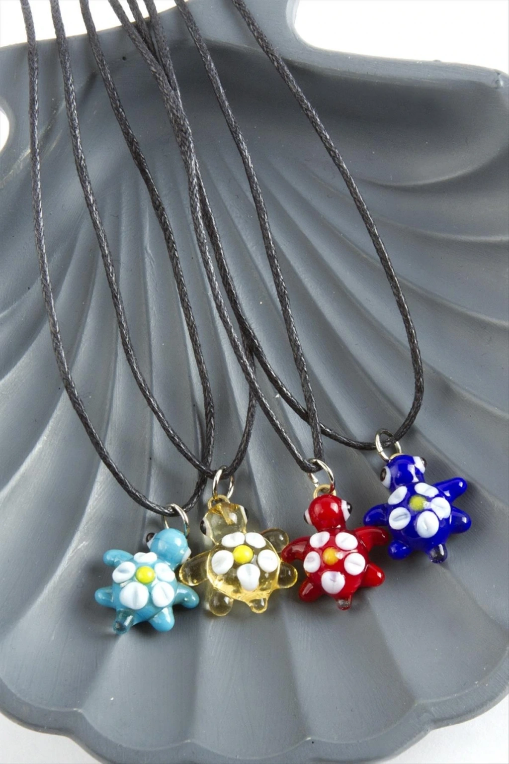 Cam Kolye; Kordonu vinlex deridir. Ürün ustalarımız tarafından atölyemizde tek tek el işçiliği ile üretilmektedir. İmalatımız da yerli cam ve orijinal italyan cam kullanılmaktadır. Cam ürünlerinde sanatsal bir işçilikle çalışılmaktadır. Ürün asortilidir. Siparişleriniz de karışık olarak gönderilecektir. Ürün cam boyu 1,5 cm ve ip boyu 45 cmdir.