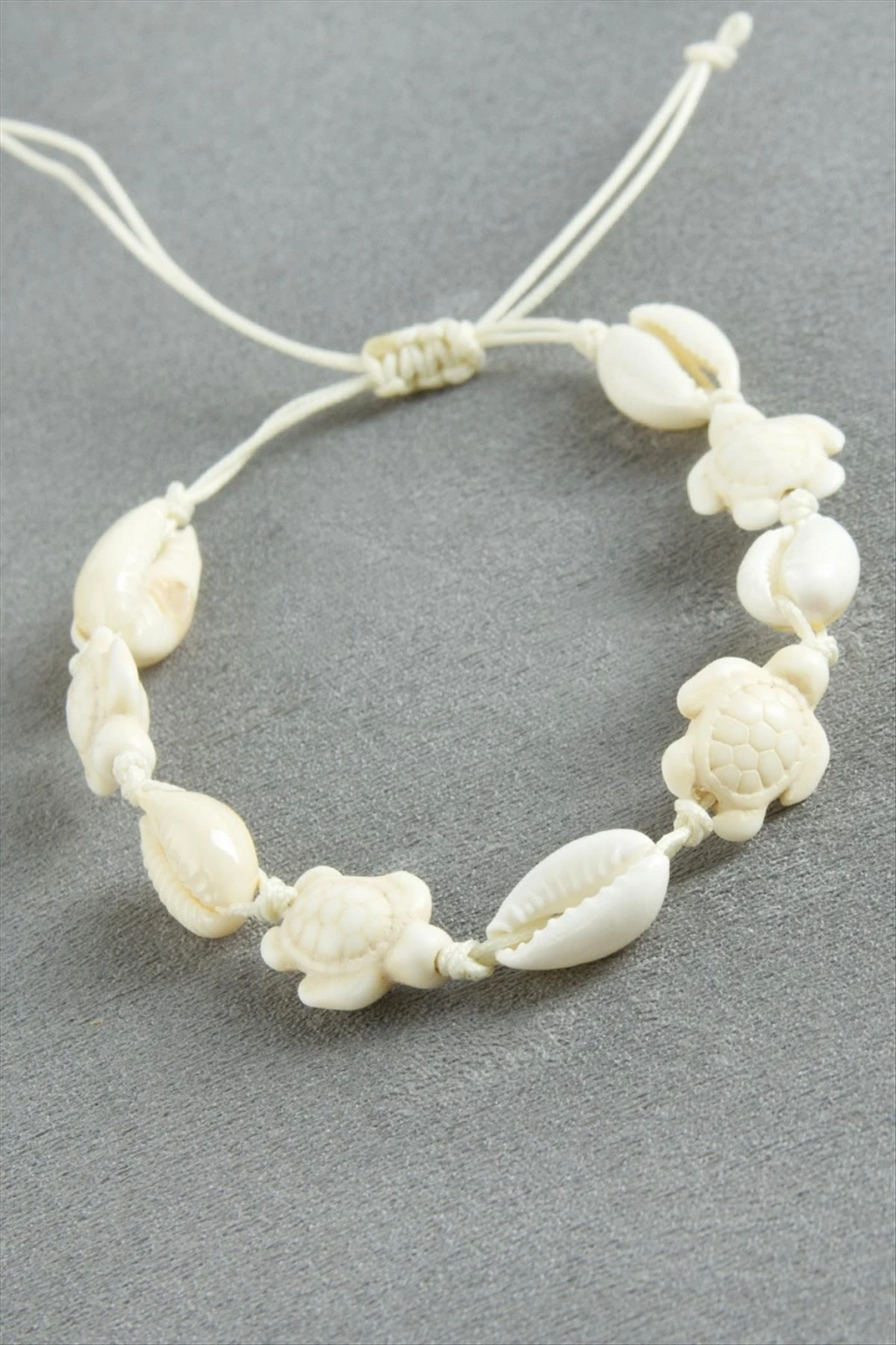 Bileklik; Ürün malzemesi istiridye ve makrome iptir. Ürün arkası asansörlüdür. Bileğe göre ayarlanabilir.