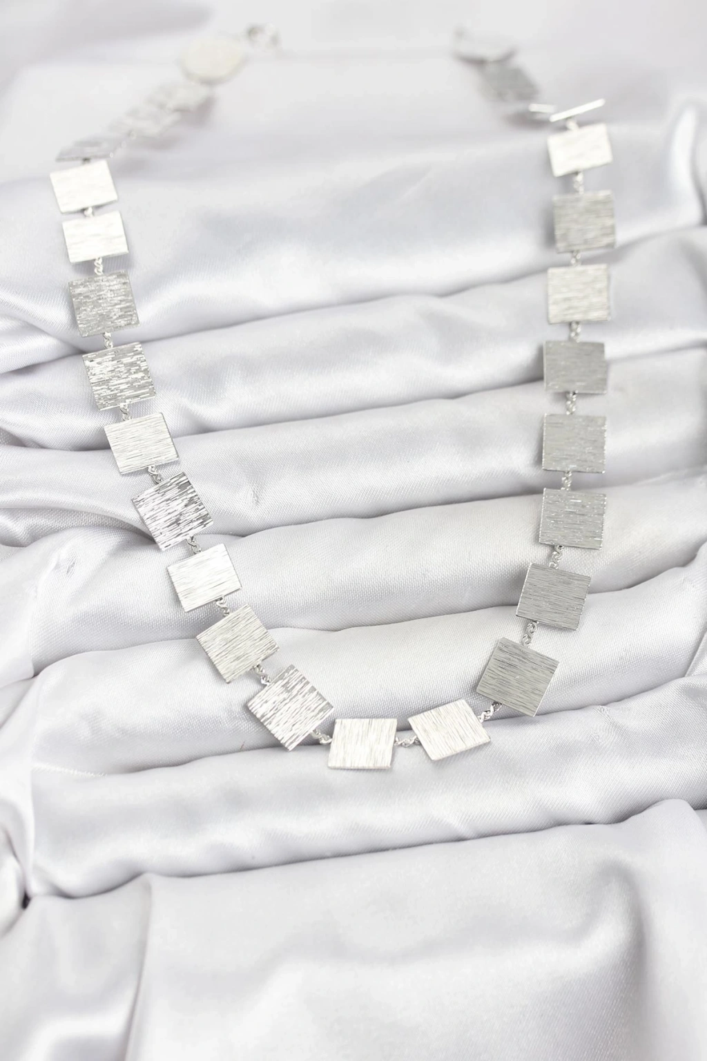 Kare Plaka Model Gümüş Renk Kadın Kolye - TJ-BKO10824