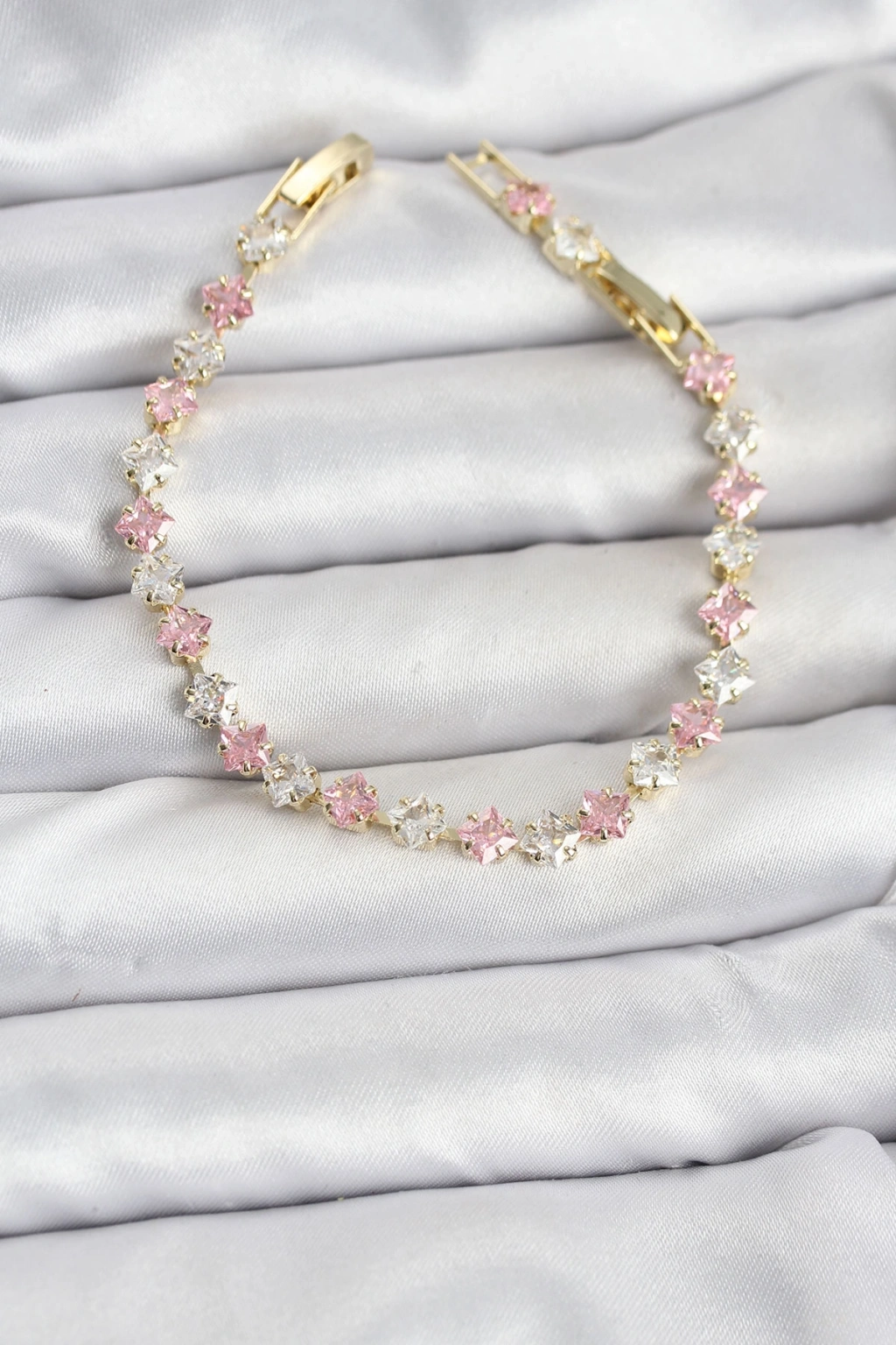 Kare Zirkon Taşlı Gold Renk Kadın Bileklik - TJ-BB8148