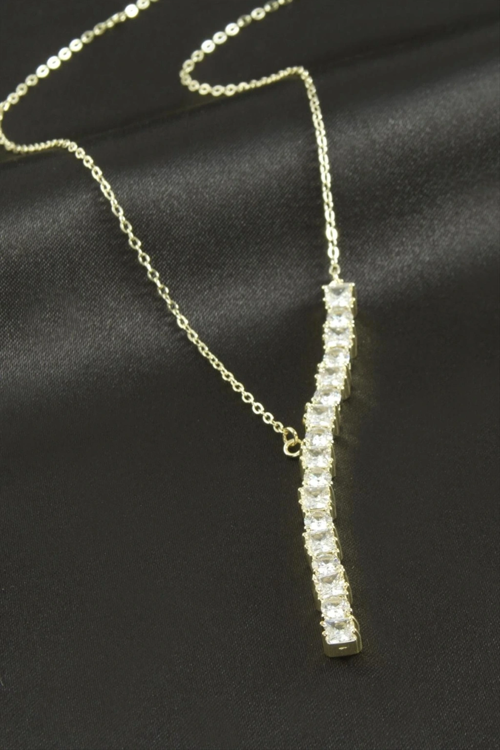 Kolye; Ürün malzemesi zirkon taş ve çeliktir. Kararma yapmaz. 1 nci sınıf kaliteli malzemeden üretilmiştir. Zincir uzunluğu 55 cm ve ucundaki aparat boyu 7 cmdir. Kartlı ve paketiyle beraber gönderilecektir.