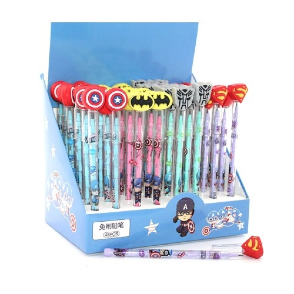KARIŞIK KAHRAMAN FİGÜRLÜ KURŞUN KALEM MODEL 3Karışık kahraman figürlü kurşun kalem model 3, yazı yazmayı sıradan bir işten çıkarıp eğlenceli bir maceraya dönüştüren, sevilen süper kahramanların ruhunu taşıyan özel bir kırtasiye ürünüdür. Captain America, Batman, Superman ve Transformers gibi efsanevi karakterlerin ikonik sembolleriyle donatılan bu kalemler, hem okulda hem de ofiste tarzınızı yansıtmanızı sağlar. Yüksek kaliteli grafit yapısı ve ergonomik gövdesiyle akıcı bir yazım deneyimi sunarken, tepesindeki figür detaylarıyla koleksiyon değeri taşır.Öne Çıkan ÖzelliklerEfsanevi Kahraman Figürleri: Her kalemin üzerinde Batman’den Superman’e kadar dünya çapında sevilen kahramanların sembolleri ve figürleri yer alır.Akıcı Yazım Deneyimi: Yüksek kaliteli kurşun ucu sayesinde kağıt üzerinde kolayca kayar, yorulmadan uzun süre yazı yazmanıza veya çizim yapmanıza olanak tanır.Eğlenceli ve Motivasyon Edici: Özellikle çocukların ders çalışma motivasyonunu artıran renkli ve dinamik tasarımıyla dikkat çeker.Ergonomik ve Hafif Tasarım: Standart kurşun kalem boyutlarındaki yapısıyla kalemliklerde ve çantalarda yer kaplamaz, ele tam oturarak konforlu bir tutuş sunar.Dayanıklı Gövde: Kaliteli malzemeden üretilen gövdesi, açma işlemleri sırasında çatlama yapmaz ve uzun ömürlü kullanım sağlar.Mükemmel Hediye Alternatifi: Süper kahraman tutkunları için küçük ama etkileyici bir hediye seçeneği olup, her yaştan kullanıcıya hitap eder.Kullanım AlanlarıOkul ve Eğitim: Öğrenciler için not almayı ve ödev yapmayı daha keyifli hale getiren bir kırtasiye aracı.Ofis ve İş Yeri: Masa başında çalışan yetişkinler için masaya renk katan ve ilgi çeken bir aksesuar.Koleksiyon: Süper kahraman temalı ürün biriktirenler için serinin 3. modeline ait özel bir parça.Teknik Özellikler TablosuÖzellikDetayÜrün TipiFigürlü Kurşun KalemModelKarışık Kahramanlar (Model 3)KarakterlerCaptain America, Batman, Transformers, Superman vb.MalzemeYüksek Kaliteli Ahşap ve GrafitÖzellikFigürlü Başlık, Akıcı YazımRenk/DesenKarışık Desenli (Stok durumuna göre gönderilir)Paket İçeriği1 Adet Karışık Kahraman Figürlü Kurşun Kalem