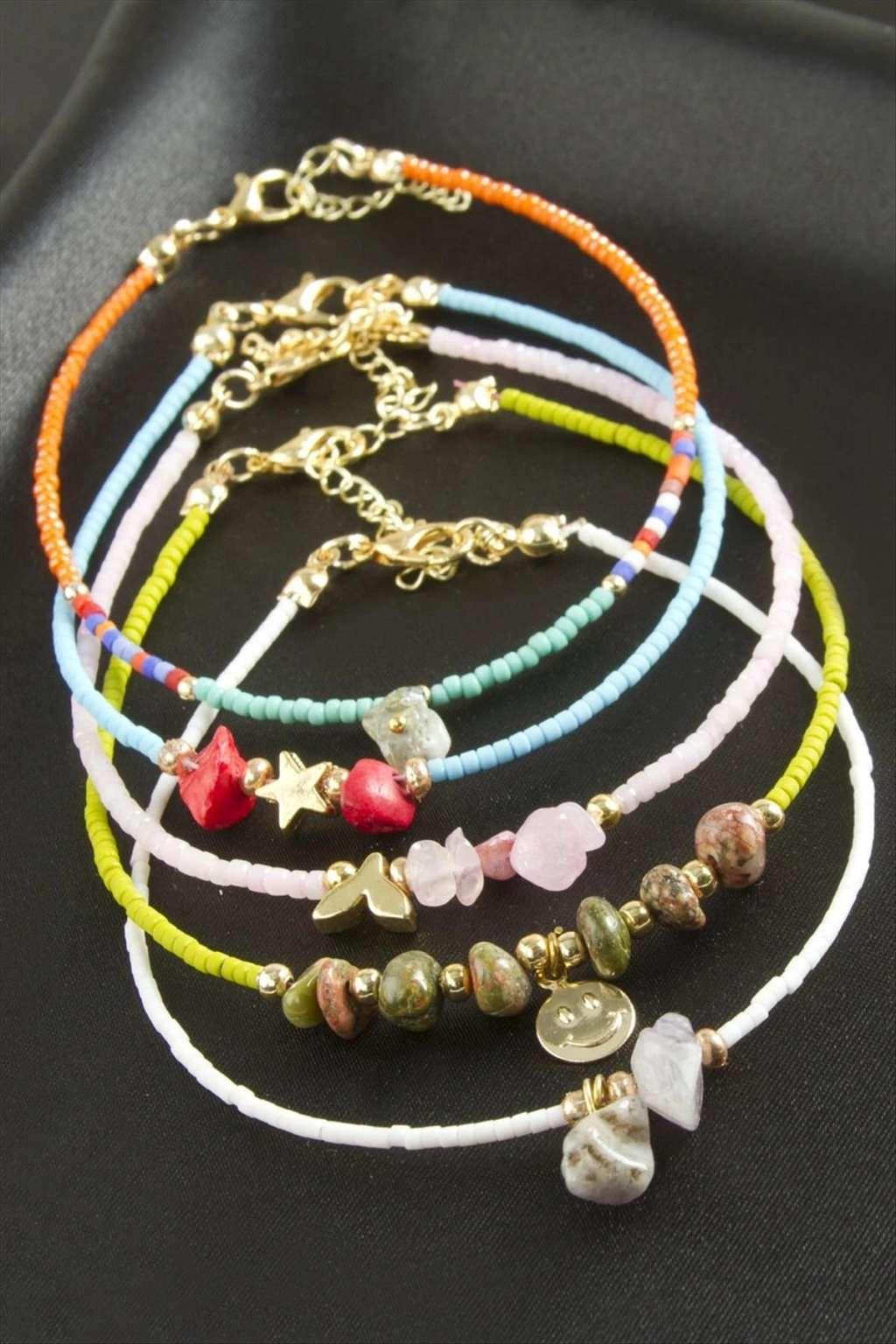 Bileklik; Ürün malzemesi metal, mine boyama ve miyoki boncuktur. Ürün boyu 19 cmdir. Ürün renkleri ve modelleri asortilidir. Siparişlerinizde karışık olarak gönderilecektir.