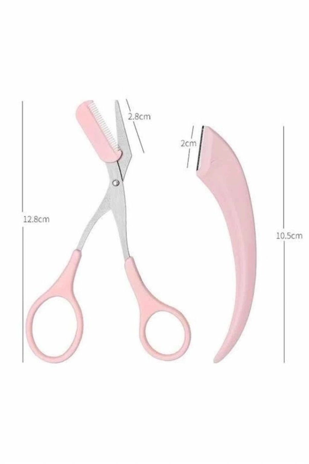 Kavisli Kaş Düzeltici Seti Kaş Makası Ve Kaş Usturası Paslanmaz Çelik Bıçaklı