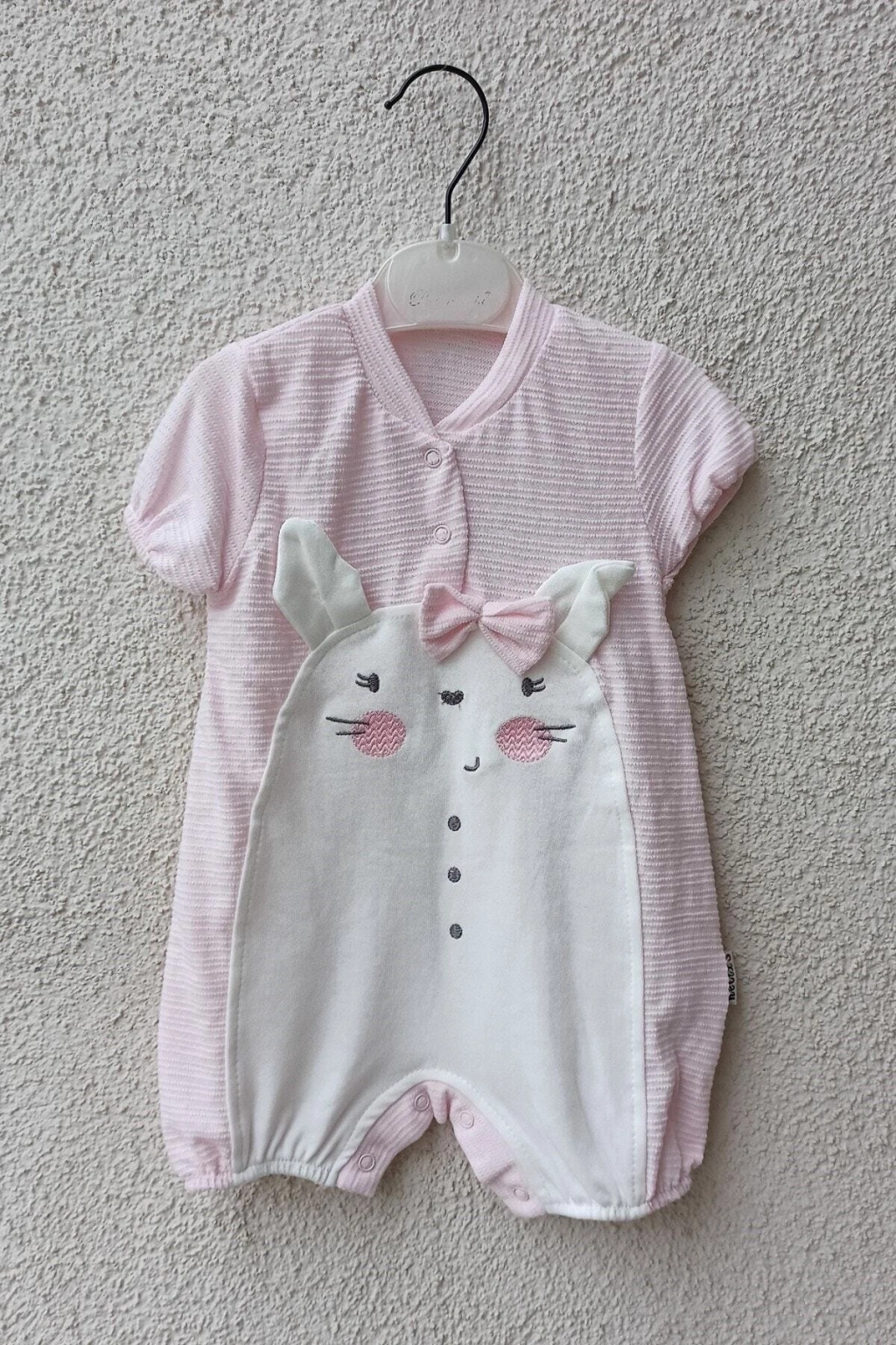 Tavşan Nakışlı Güpürlü % 100 Pamuk Kız Bebek Tulum