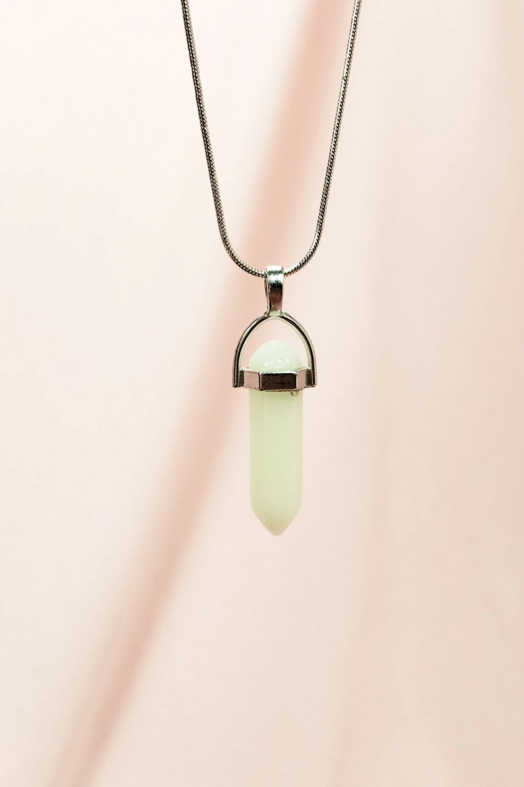Yeşil Kuvars Doğal Taşı Zincirli El Yapımı Tasarımlı Kolye Uç: 3,5 cm Zincir: 20 cm Kutulu