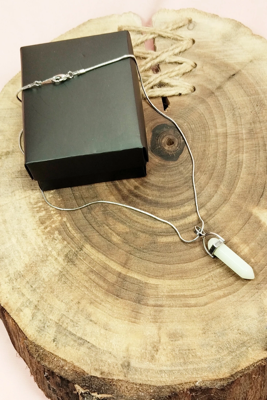 Kalsedon Doğal Taşı Zincirli El Yapımı Kolye Uç: 1,5 cm Zincir: 20 cm Kutulu
