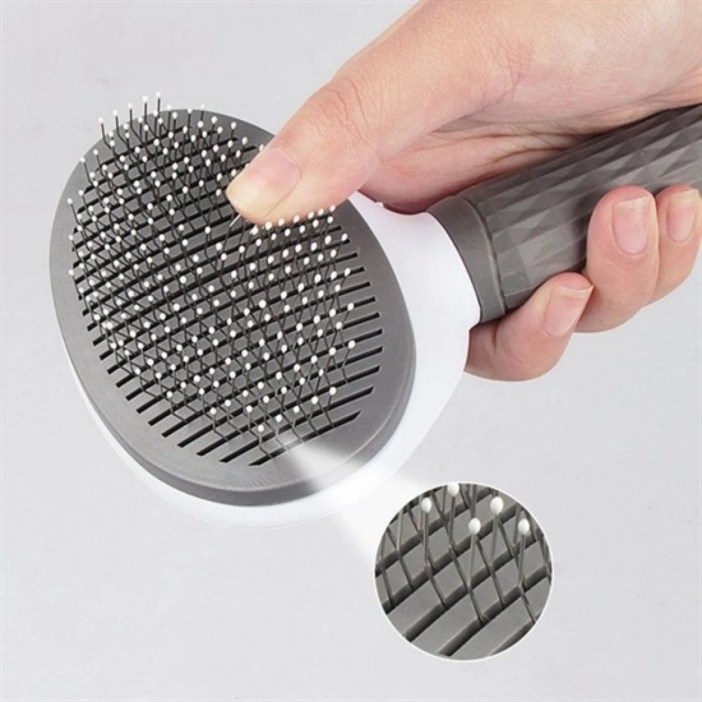 Kedi Köpek Tüy Toplayıcı düğmeli tasarımıyla kendini temizleme özelliğine sahiptir, tüyleri pratik bir şekilde alarak tarağı hızlı ve kolay bir şekilde temizler.