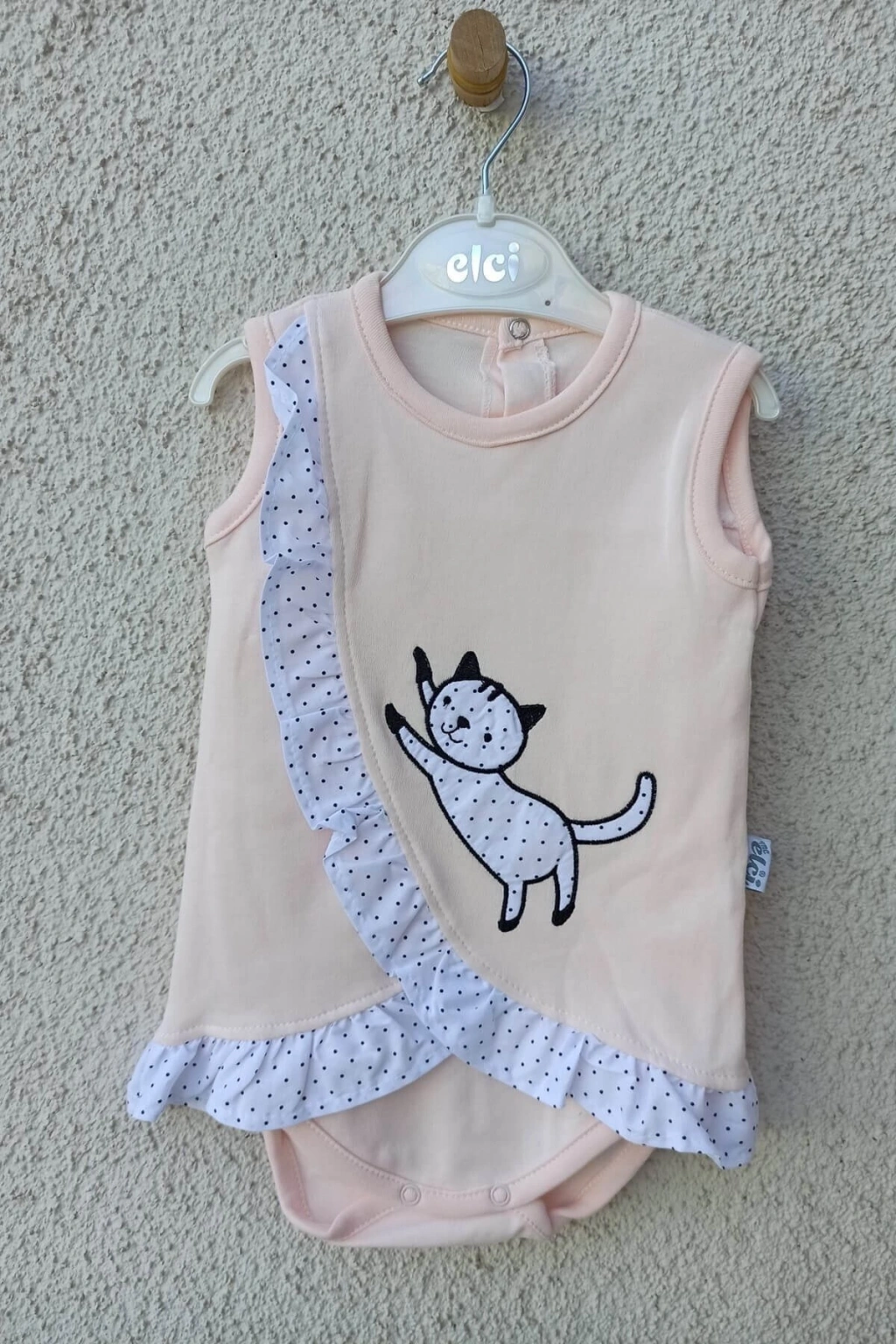 Kız Bebek Pembe Kedili Fırfırlı Bandanalı Badi