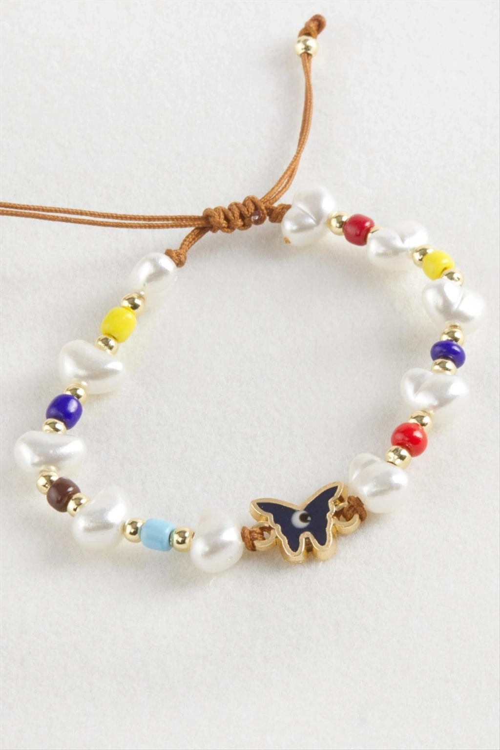 Kelebek Boncuk İnci Makrome İp Bileklik