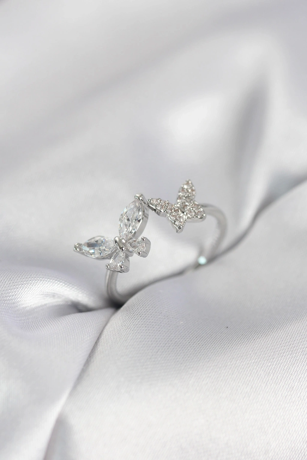 Kelebek Model Zirkon Taşlı Gümüş Renk Kadın Yüzük - TJ-BYK4077