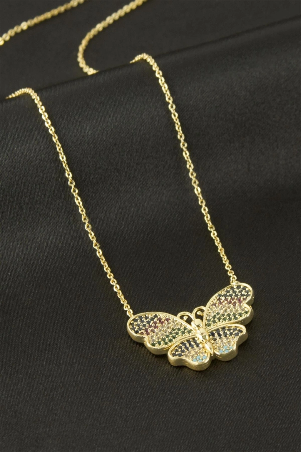 Kolye; Ürün malzemesi metal ve zirkon taşlıdır. Ürün boyu 45 cmdir. Kartlıdır. 1 sınıf kaliteli malzemeden üretilmiştir. Ürün ucundaki aparat boyu 2,5 cmdir.