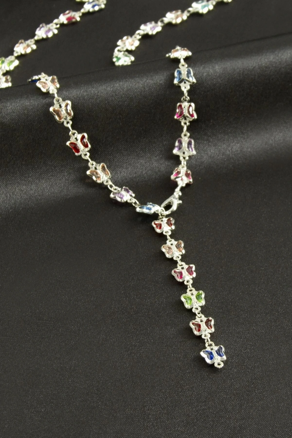 Kolye; Ürün malzemesi zirkon taş ve metaldir. 1 sınıf kaliteli malzemeden üretilmiştir. Ürün boyu 54 cmdir. Kartlıdır.