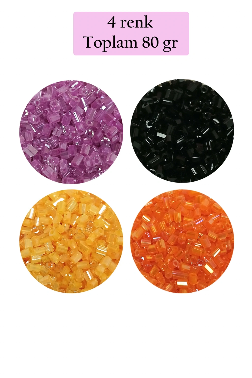 Kesme Cam Boncuk 2mm - 4 Renk - Toplam 80 Gram - BNC437