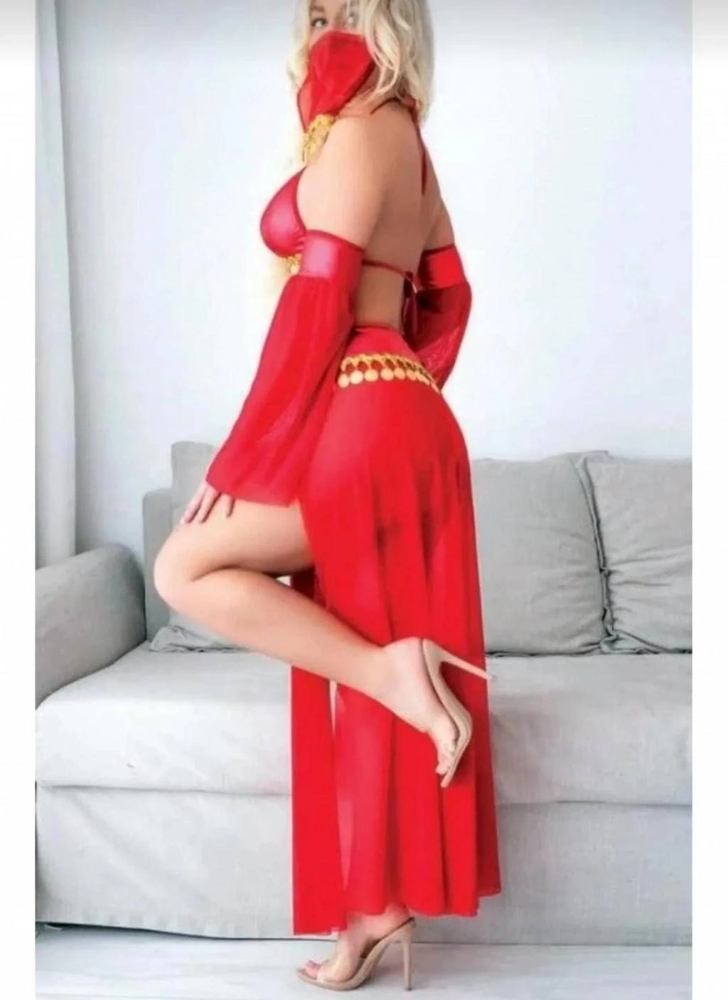 Altın sarısı aksesuarları ile birlikte şıklığınıza şıklık katacak seksi bir kostüm
