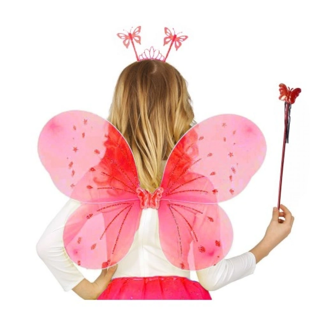 Kırmızı Renk Çocuk Kelebek Kanadı Tacı ve Asa Seti 50 cmKırmızı Renk Çocuk Kelebek Kanadı Tacı ve Asa Seti küçük kız çocuklarının hayal dünyasını renklendirmek ve masalsı bir deneyim yaşatmak için özel olarak tasarlanmıştır. Kelebek olma hayalini gerçeğe dönüştüren bu set, oyun saatlerini daha eğlenceli ve yaratıcı hale getirir.Çocuk Kelebek Kanadı Seti 50 cm genişliğindeki kırmızı tül kanatlar hafif ve rahat yapısıyla uzun süreli kullanıma uygundur. Dayanıklı tül kumaşı sayesinde çocukların hareket özgürlüğünü kısıtlamaz.Kırmızı Kelebek Taç ve Asa Seti esnek plastikten üretilmiş kelebek figürlü taç ve kırmızı kurdele detaylı plastik asadan oluşur. Taç başa kolayca uyum sağlar, asa ise sağlam yapısıyla güvenli bir kullanım sunar.Kelebek Kostüm Seti rol yapma oyunları, doğum günü partileri, kostüm partileri, okul etkinlikleri ve özel günlerde çocuklara göz alıcı bir görünüm kazandırır. Hayal gücünü, yaratıcılığı ve özgüveni desteklerken aynı zamanda el becerileri ve hareket kabiliyetinin gelişimine katkı sağlar.Kullanımı Kolay Çocuk Kostüm Seti kanatların arka kısmında bulunan lastikler sayesinde kollara kolayca takılır. Taç kafaya yerleştirilir ve asa ele alınarak kelebek dönüşümü tamamlanır.Ürün ÖzellikleriSet İçeriği: Kelebek kanadı, taç ve asaKanat Genişliği: 50 cmAsa Uzunluğu: 30 cmRenk: KırmızıMalzeme: Tül kumaş, esnek ve dayanıklı plastikKullanım Alanı: Kostüm, parti, rol yapma oyunu, özel günler