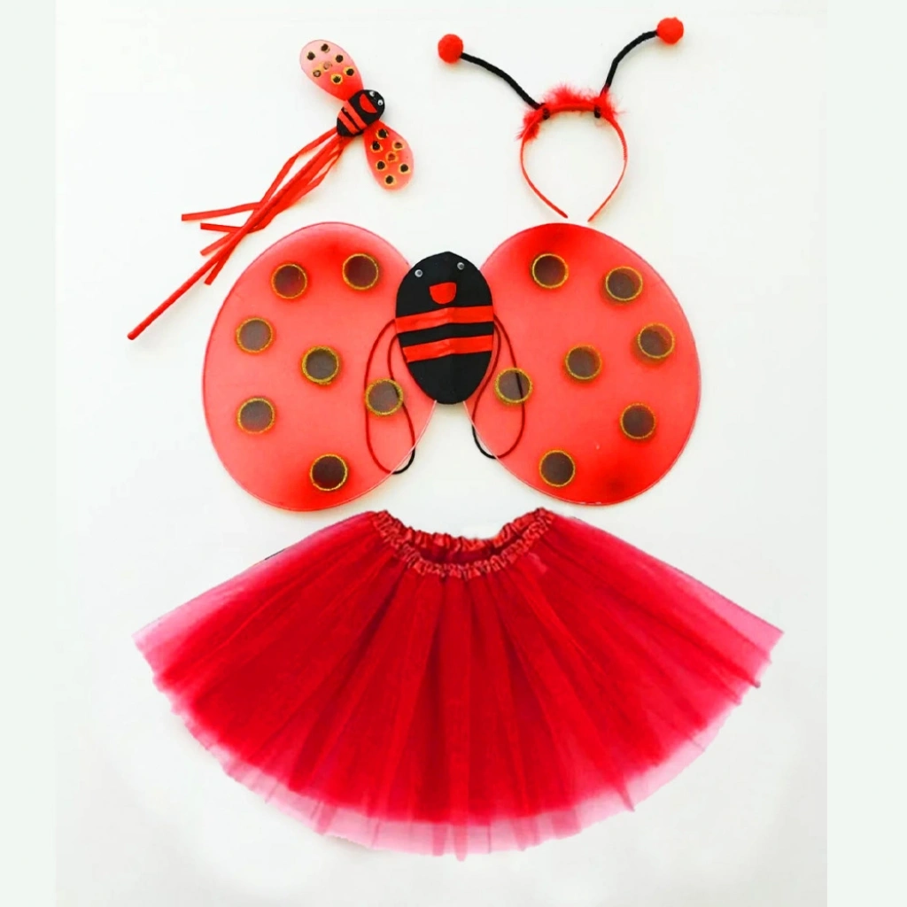 Kırmızı Uğur Böceği Ateş Böceği Kostüm Seti - (Tütü, Kanat, Taç, Asa)