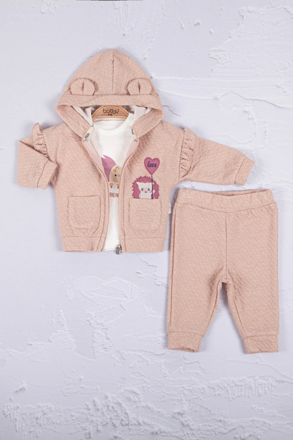 Babydonat Peluş Hırkalı 3 Lü Kız Bebek Takım