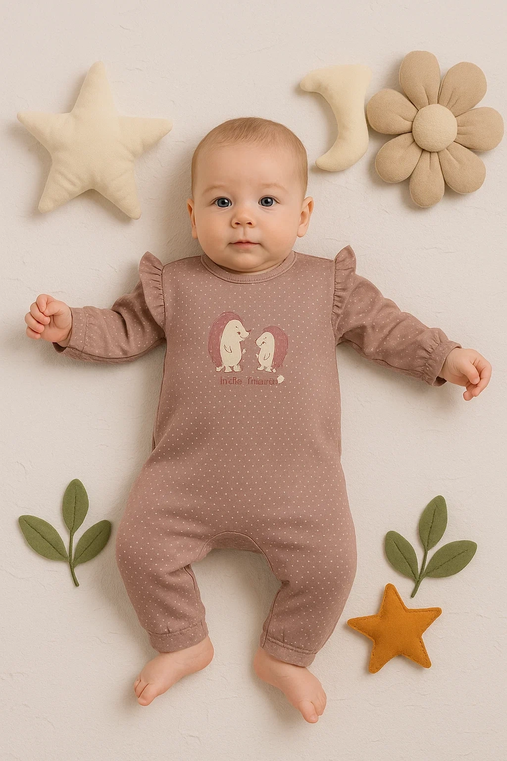 Kirpi Nakışlı % 100 Pamuk Kız Bebek Tulum