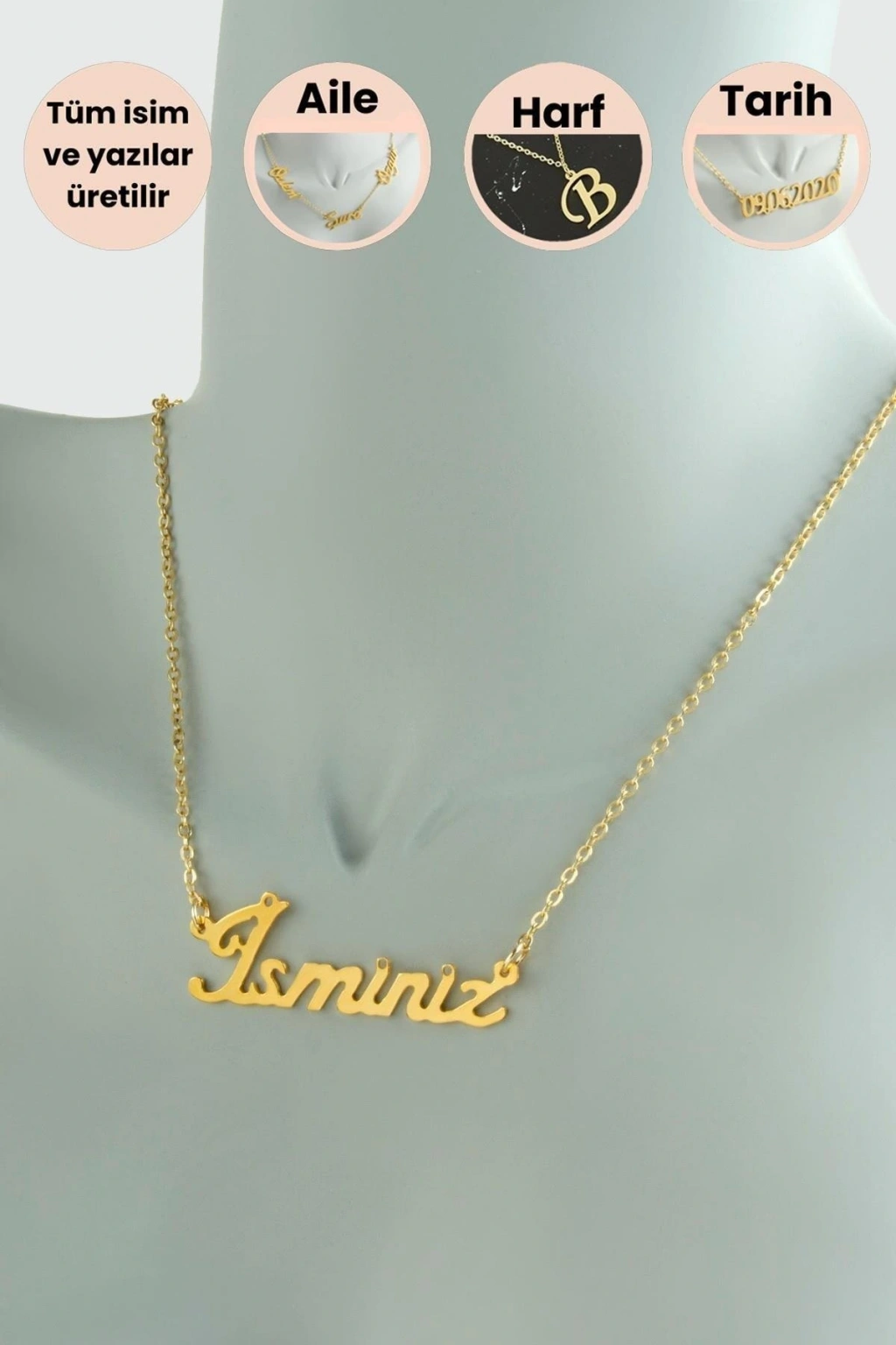 Kolye; Ürün pirinç ve altın kaplamalıdır. Kullanıma bağlı olarak uzun süre kullanıma uygundur. Ürün malzemesi 1 sınıf kalitededir. Ürün iadesi yoktur. Kişiye özel üretilmektedir. Kapıda ödeme yoktur. Ürün 7 iş günü içersin de kargoya verilir. İsimler için müşteri temsilcimiz sizinle iletişime geçecektir. Ürün zincir boyu 45 cm ve ürün üzerindeki isimler yaklaşık 3 cmdir. İsim boyları ürün ismine göre degişiklik göstermektedir.