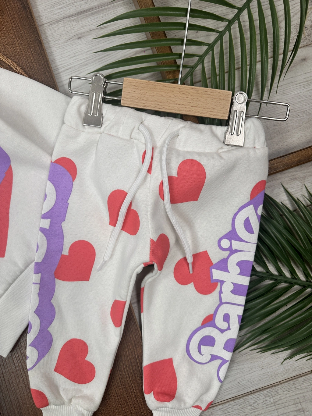 PEMBE BİSİKLET YAKA UZUN KOLLU LASTİKLİ BEL PAÇA ŞAPKALI KIZ ÇOCUK & BEBEK ALT ÜST TAKIM