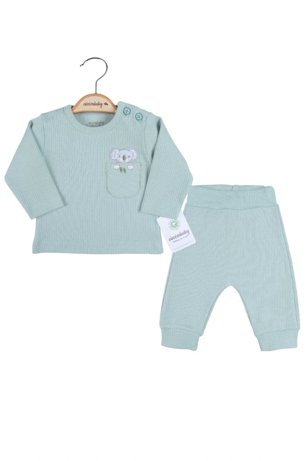 Koala Cep Nakışlı Omuzdan Düğmeli % 100 Pamuk Erkek Bebek Takım.