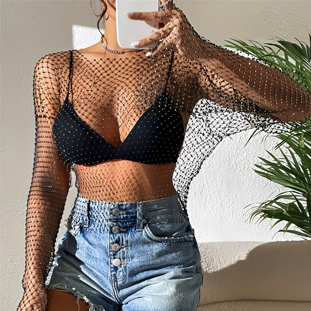 Kadın Metalik gümüş Pul Detaylı Crop Askılı Önden Bağlama 5093