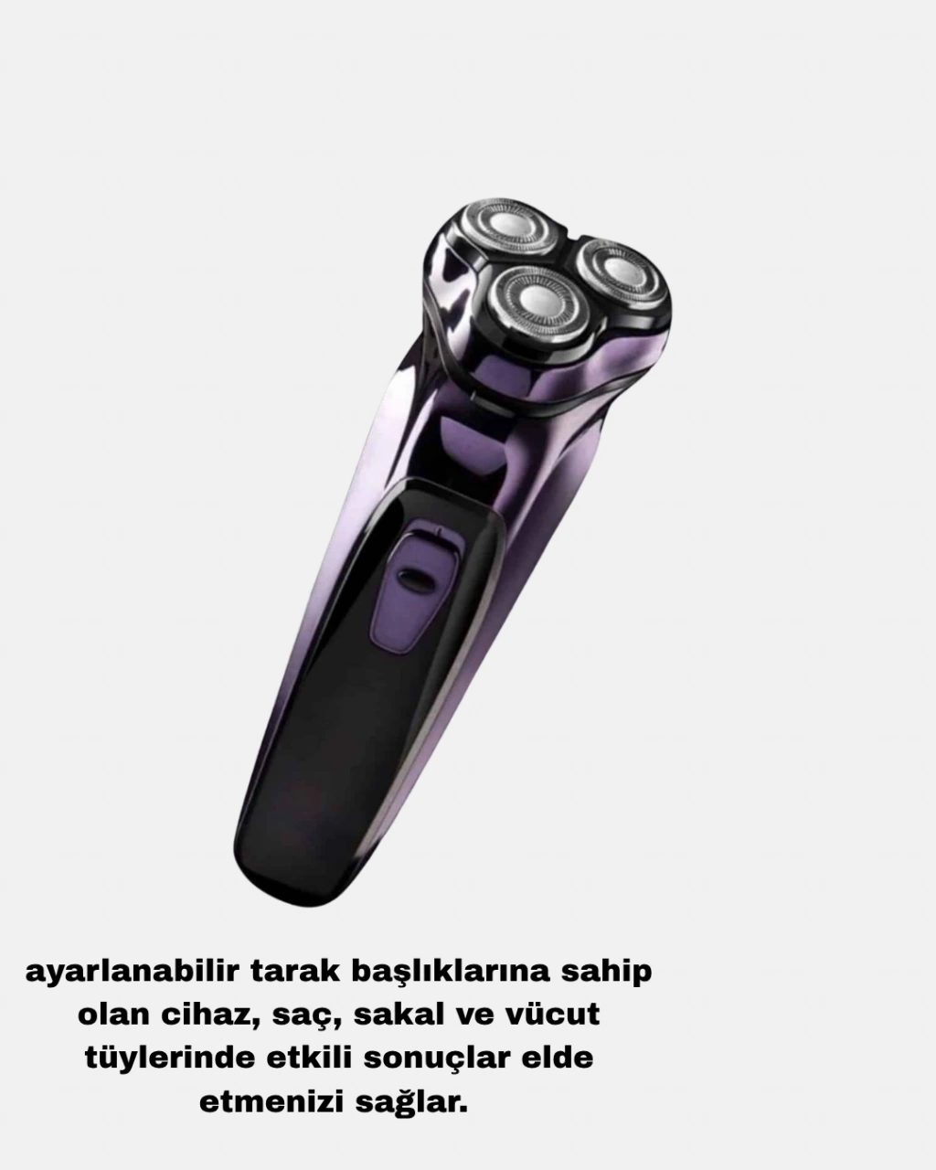 Kompakt ve taşınabilir tasarımıyla öne çıkan bu şarjlı saç ve sakal tıraş makinesi, kablosuz kullanım özelliğiyle kişisel bakımda maksimum özgürlük sunar. Evde, seyahatte, spor salonunda veya iş yerinde dilediğiniz zaman kullanabileceğiniz pratik yapısıyla günlük rutini kolaylaştırır. Güçlü motor performansı sayesinde saç ve sakalları tek seferde eşit şekilde keser, profesyonel düzeyde pürüzsüz sonuçlar sağlar.Cilt dostu keskin bıçaklar tahriş ve kızarıklığı minimuma indirerek hassas ciltlerde bile güvenli kullanım sunar. Kuru kullanım özelliği tıraşı daha hızlı ve kolay hale getirirken temizliği de oldukça pratik kılar. Ayarlanabilir tarak başlıkları sayesinde farklı uzunluklarda kesim yapmak mümkündür. Hem sakal şekillendirmede hem saç kısaltmada hem de vücut tüylerinde etkili performans sağlar.Ergonomik tutuş yapısı, cihazı elinizde güvenli ve rahat bir şekilde kullanmanıza yardımcı olur. Motor gücü stabil çalışarak keskin ve takılmadan kesim deneyimi sunar. Ayrıca cihazın üzerinde yer alan şarj göstergesi, batarya seviyesini gerçek zamanlı takip etmenizi sağlar. Şarj bitme sürprizi yaşamadan tıraşınızı tamamlayabilirsiniz.Kablosuz kullanım avantajı sayesinde hareket özgürlüğü sunan bataryası güçlü ve uzun ömürlüdür. Dayanıklı malzemeden üretilmiş dış gövdesi darbelere karşı dirençlidir ve uzun süreli kullanım sağlar. Hafif ve taşınabilir yapıda olması, ürünü çantada taşımayı son derece kolay hale getirir.Saç, sakal ve vücut bakımını tek cihazla yapmak isteyenler için ideal bir seçenektir. Güçlü performansı, ergonomik yapısı ve uzun ömürlü dayanıklılığıyla bu şarjlı tıraş makinesi her kullanışta profesyonel bir sonuç sunar.