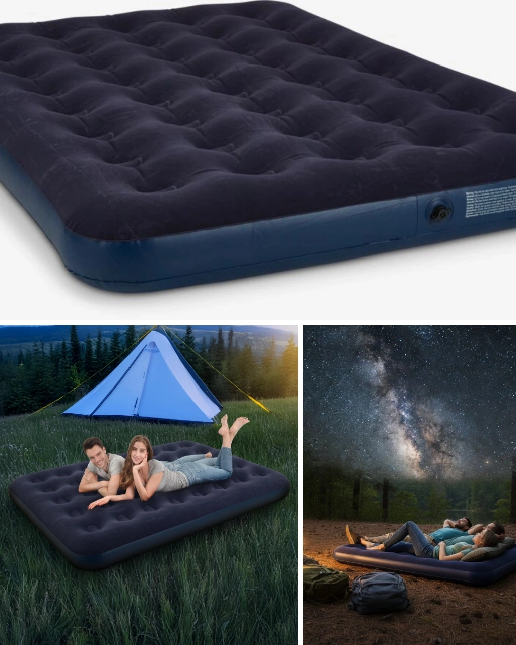 Bu şişirilebilir hava yatağı, pratikliği ve konforu bir arada sunar. Dayanıklı vinil yapısı, dış mekân kullanımına uygunken flokeli üst yüzeyi yumuşak bir temas sağlar. Çift kişilik geniş alanı ile iki yetişkin için ideal bir uyku alanı oluşturur.Hızlı şişirme sağlayan vidalı vana sistemi, ürünü kısa sürede kullanıma hazır hale getirir. Taşınabilir yapısı sayesinde kamp, festival ve misafir kullanımında pratik bir çözüm sunar.