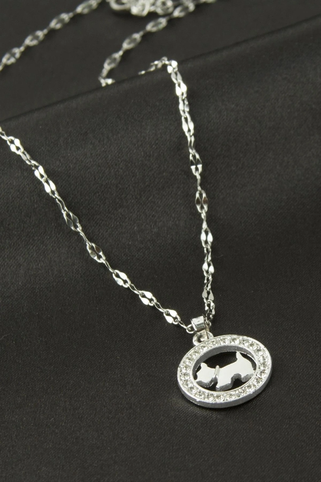 Kolye; Ürün malzemesi metal ve zirkon taşlıdır. Ürün boyu 45 cmdir. Kartlıdır. 1 sınıf kaliteli malzemeden üretilmiştir. Ürün ucundaki aparat boyu 2 cmdir.