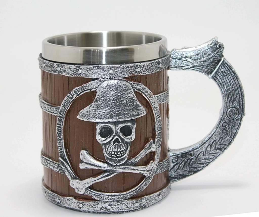 Korsan Temalı Ahşap Görünümlü 3d Kabartmalı Çelik Kupa Bardak Alk4372