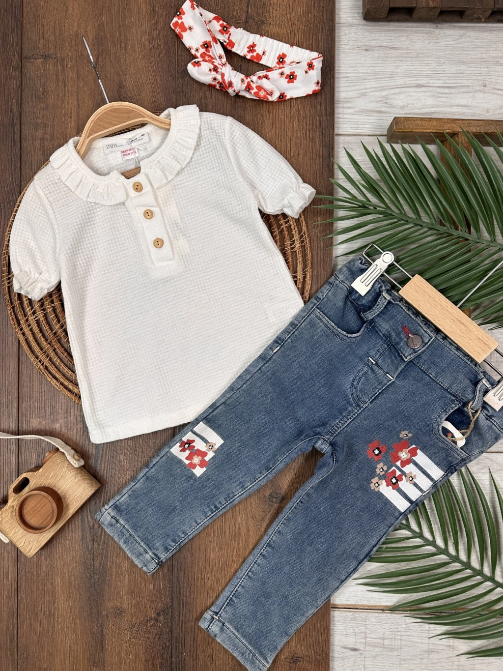 KOT PANTOLON BLUZ TAKIM, PAMUKLU, DESENLİ, MEVSİMLİK, GÜNLÜK, KIZ ÇOCUK & BEBEK ALT ÜST TAKIM