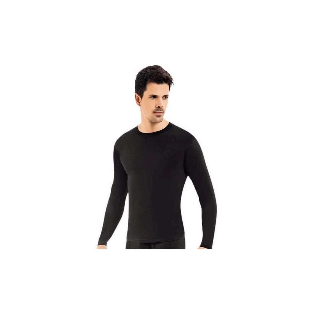 MARSiLYAN- Erkek Sıfır Yaka Uzun Kol Siyah Fanila