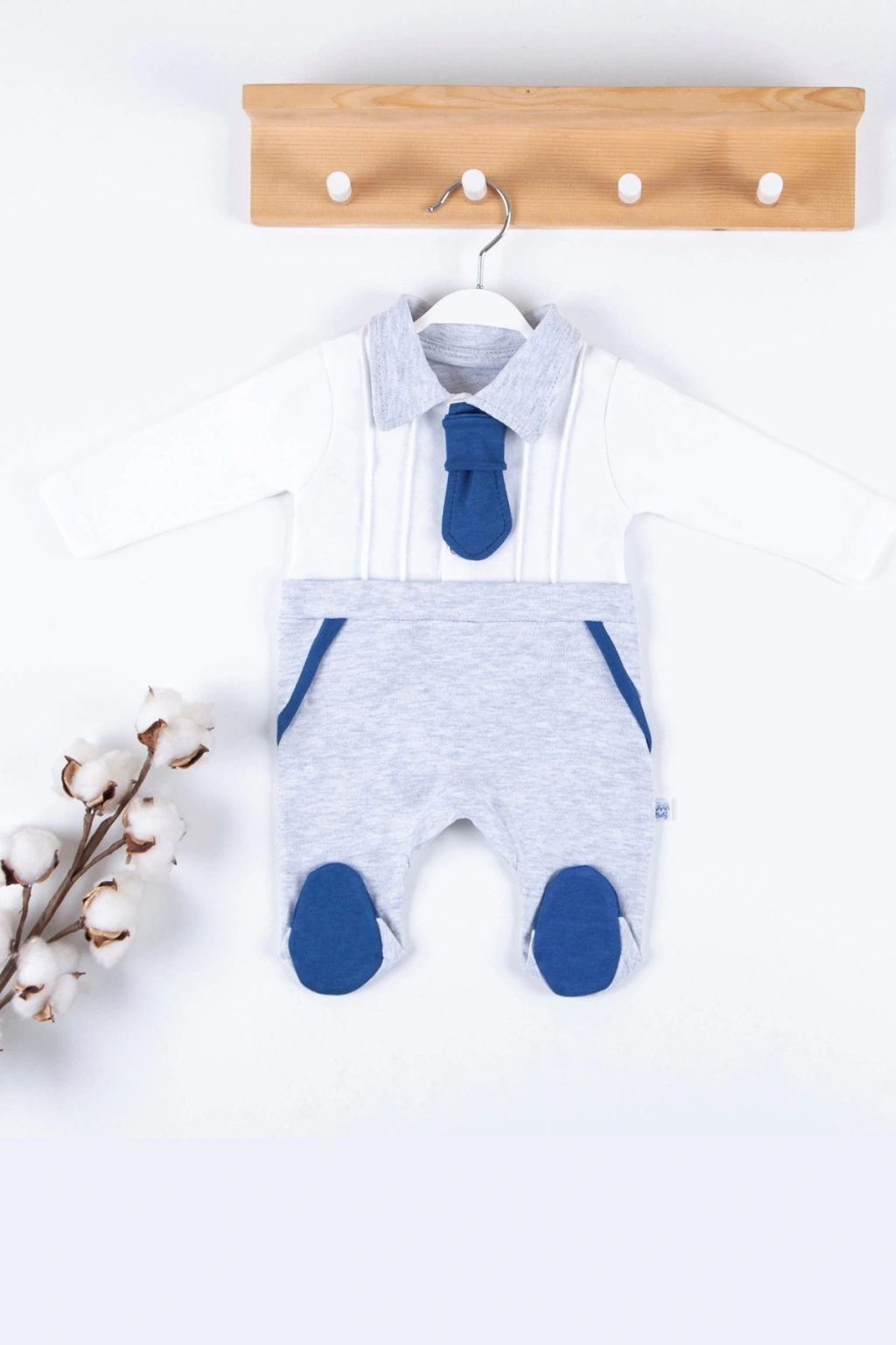 Kravat Aksesuarlı Ayaklı % 100 Pamuklu Erkek Bebek Tulumu