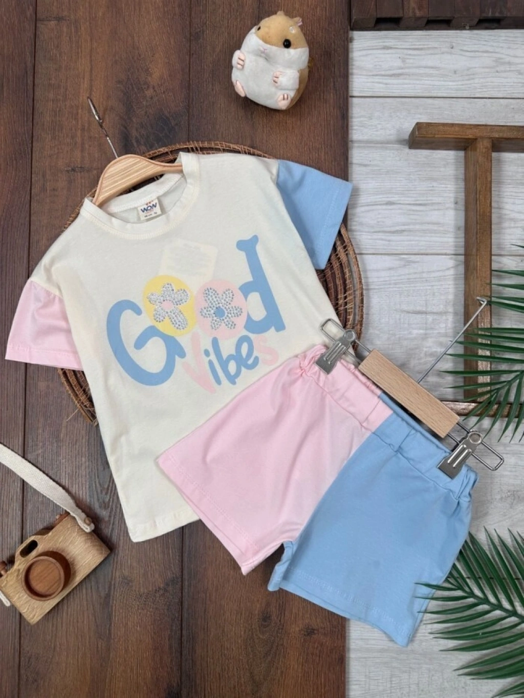 KAHVERENGI KISA KOLLU KIZ PAMUKLU ÇOCUK & 2 PARÇA BEBEK TULUM