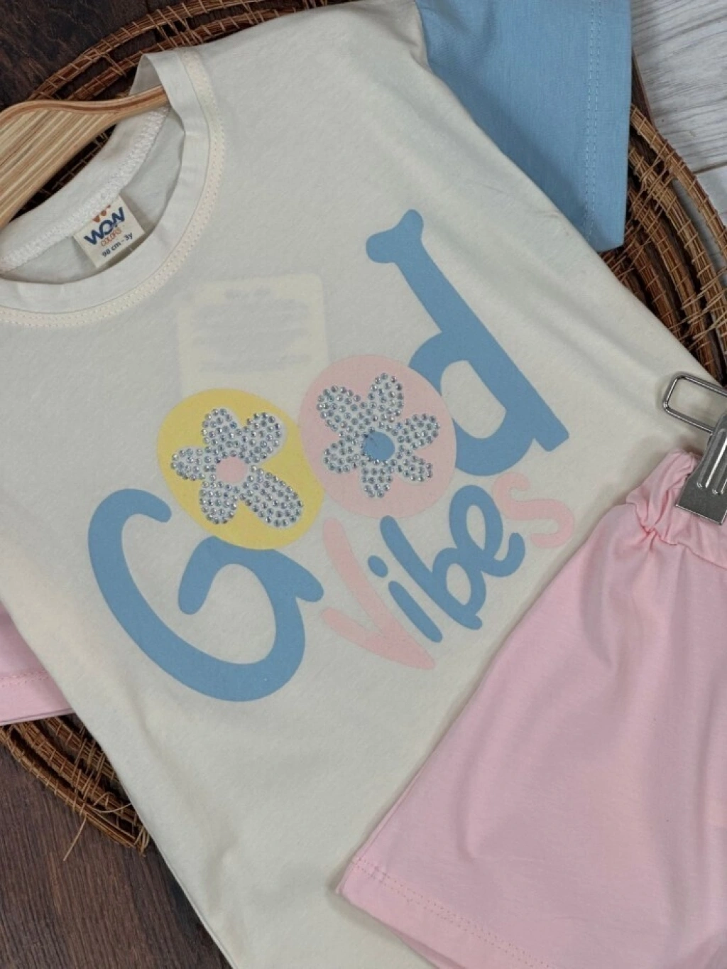 KREM BİSİKLET YAKA KISA KOLLU LASTİKLİ BEL KIZ ÇOCUK & BEBEK ALT ÜST TAKIM