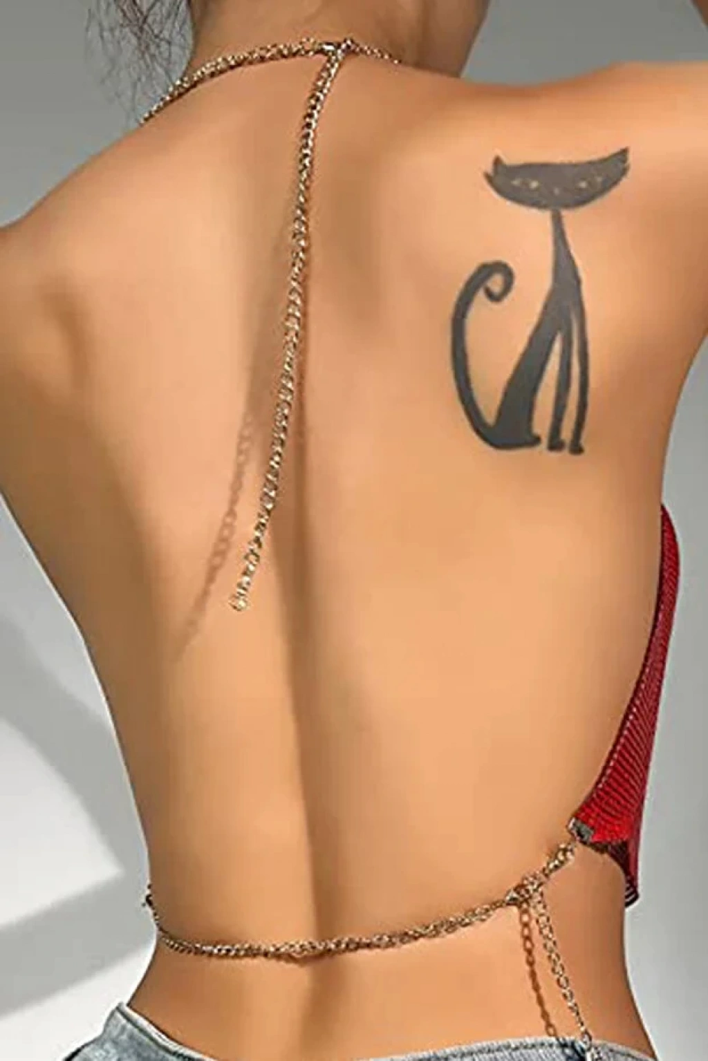 Kristal Kırmızı Taşlı Parlak Crop & Bluz Kolsuz Kayık Yaka Parti Plaj Büstiyer