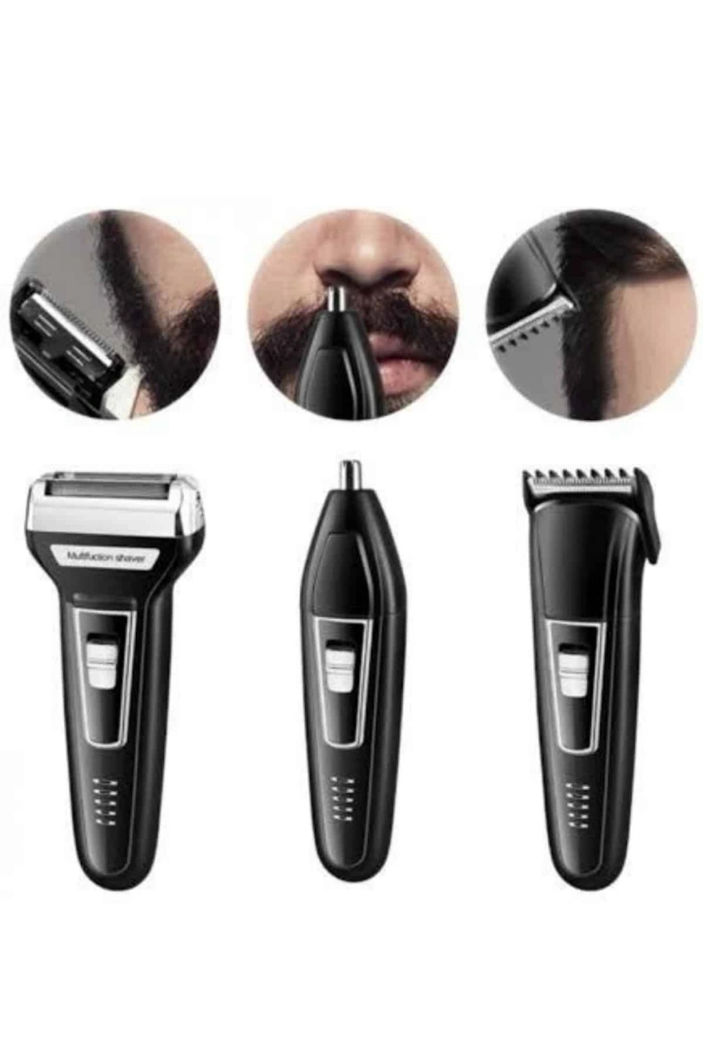 Bu üçlü set sakal tıraş makinesi, saç tıraşı, sakal tıraşı, burun ve kulak kılı alma gibi işlemlerde mükemmel sonuçlar sunar. Her ihtimale karşı çok amaçlı kullanım sağlayan bu set, ihtiyacınız olan tüm tıraş işlemlerini tek cihazla yapmanıza olanak tanır. İnce başlıkları sayesinde istediğiniz boyutlarda kesim yapabilir, her türlü tıraş ihtiyaçlarınıza uygun mükemmel sonuçlar elde edebilirsiniz. Paslanmaz çelik bıçaklar ile üretilmiş olması, makinenin yüksek dayanıklılığını garanti eder ve uzun ömürlü kullanım sağlar.