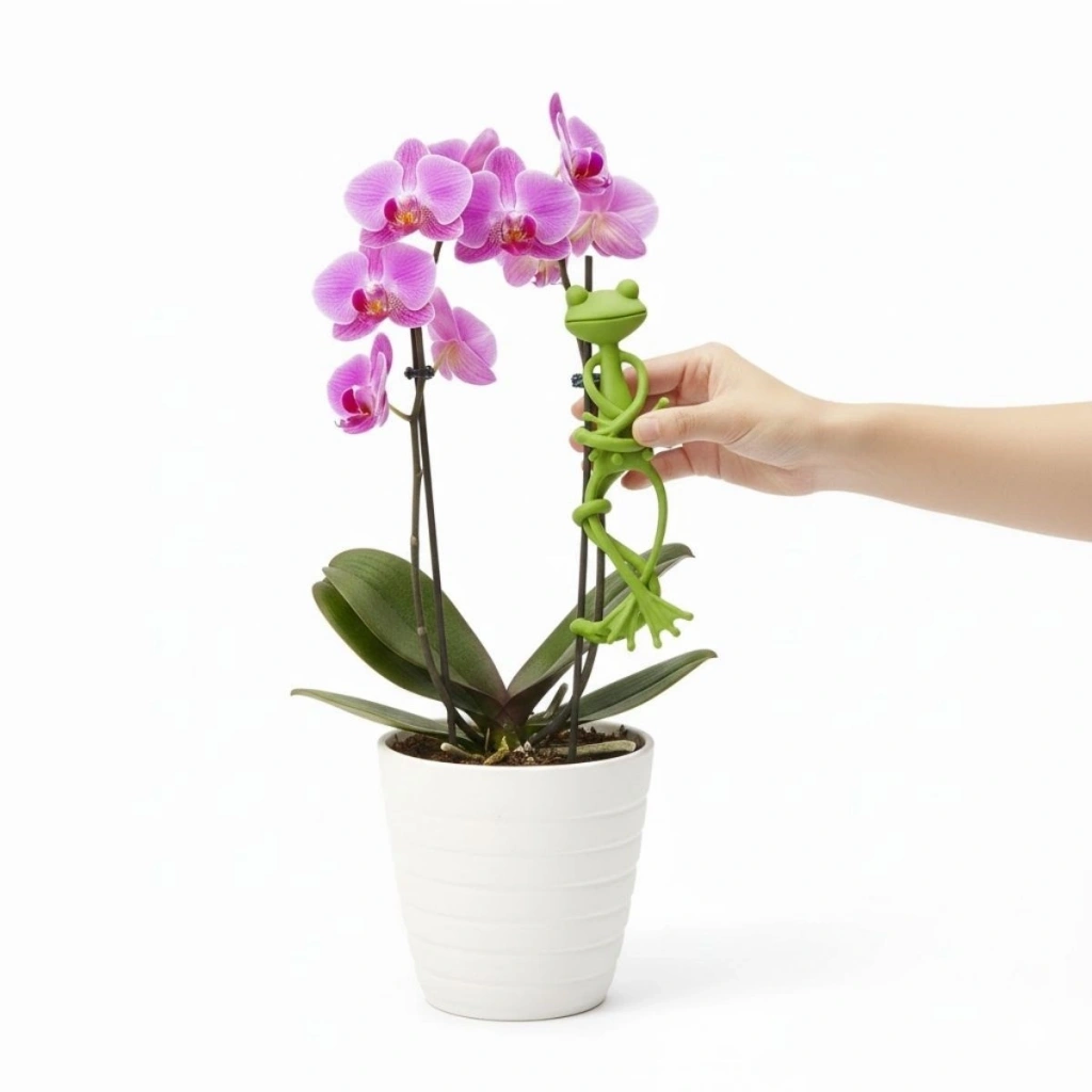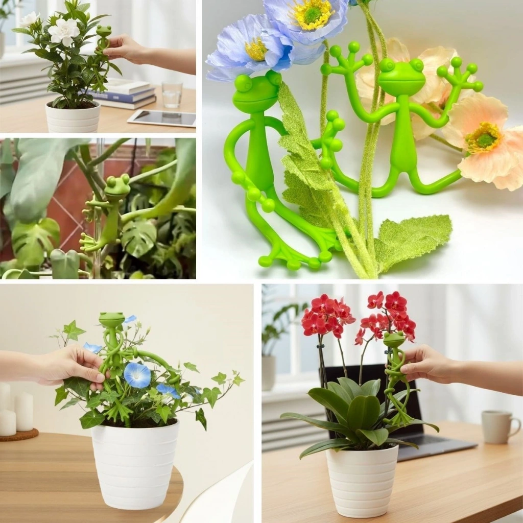 Kurbağa Şeklinde Sevimli Tasarım: Bitkilere hem destek sağlar hem de eğlenceli bir dekoratif görünüm katar.